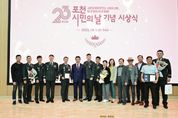 내고향뉴스 채필재 기자 | 포천시는 지난 1일 시청 대회의실에서 제23회 포천시민의 날을 기념해 2025년 한 해 동안 지역 발전에 기여한 유공자들을 대상으로 표창 수여식을 개최했다. 이날 행사에는 백영현 시장을 비롯해 임종훈 포천시의회 의장, 김용태 국회의원을 대신한 김길주 사무국장과 수상자 등 100여 명이 참석해 자리를 빛냈다. 올해 표창은 △경기도지사 표창 8명 △포천시장 표창 65명 △포천시의회 의장 표창 14명 △국회의원 표창 14명 등 총 101명에게 수여했다. 수상자들은 지역사회 봉사, 문화·체육 진흥, 농업 발전, 지역경제 활성화 등 다양한 분야에서 묵묵히 헌신한 공로를 인정받았다. 백영현 포천시장은 “포천의 오늘을 있게 한 주인공은 바로 시민 여러분”이라며, “각자의 자리에서 보여주신 헌신 덕분에 포천이 함께 성장하는 희망의 도시로 나아갈 수 있었다. 앞으로도 모두가 행복한 도시를 만들기 위해 최선을 다하겠다”고 말했다. 한편, 제23회 포천시민의 날 기념 행사는 10월 12일 포천종합운동장에서 열릴 예정이다.