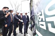 내고향뉴스 김익성 기자 | 조원휘 대전시의회 의장과 송인석 산업건설위원장이 1일 대전 유성구 도안동 호수공원 일원에서 국내 최초로 실시된 3칸 굴절차량 도로 시험 운행 현장을 점검했다. 한편, 대전시가 전국 최초 도입하는 3칸 굴절차량은 향후 6월까지 도안동로 중앙버스전용차로 일부 구간(갑천4블럭~용반네거리)에서 시험 운행 후 전용차로 및 차고지 등 기반 시설 구축 일정에 맞춰 올해 10월까지 단계적으로 개통할 계획이다.