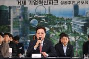 내고향뉴스 임정빈 기자 | 경상남도와 거제시, 참여기업이 함께 추진하는 ‘거제 기업혁신파크’가 미래형 융합도시 조성을 향한 실행 의지를 공식적으로 천명했다. 박완수 도지사는 18일 소노캄 거제에서 열린 ‘거제 기업혁신파크 성공추진 선포식’에서 사업의 국가적·지역적 의미를 강조하며 “거제시를 세계적인 관광도시로 만들 것”이라고 밝혔다. 선포식에는 박완수 도지사, 변광용 거제시장, 서일준 국회의원을 비롯해 그란크루세·네이버클라우드·다산네트웍스·디스트릭트코리아·수산인더스트리 등 주요 참여기업 대표와 도·시의원이 참석했다. 박 지사는 이날 사업 추진 의지를 밝히며, “디지털 융합 미래도시 성공추진을 위한 협의 자리가 마련된 것을 매우 뜻깊게 생각한다”고 말했다. 이어 “각 분야에서 대한민국 최고 역량을 갖춘 기업들이 함께하는 만큼 기업혁신파크에 대한 기대가 크다”고 밝혔다. 또한 박 지사는 장목관광단지 조성이 본격 추진된 과정을 설명하며 “26년 만에 조성 사업이 재개된 이후로 제대로 만들기 위해 추진해왔다”며 “기업혁신파크 지정 이후, 단일 관광단지로는 세계적 프로젝트를 만들기 어렵다고 판단해 범위를 확