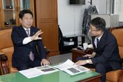 내고향뉴스 김익성 기자 | 조병옥 음성군수가 14일 정부예산안 심사 중인 국회를 방문해 내년도 정부 예산안에 대한 지역 현안 사업의 국비 예산 증액 건의에 나섰다. 군은 앞서 기획재정부와 국회를 수차례 방문해 예산 반영의 필요성을 강조해 왔으며, 국회를 찾아 마지막까지 예산 확보에 전력을 다하고 있다. 먼저 조 군수는 한병도 국회 예산결산특별위원회 위원장을 만나 △국립소방병원 운영비 지원 △소이지구 다목적농촌용수 개발사업 △무극지구 농촌용수 이용체계 재편사업 △전통사찰 보수정비사업 등 사업의 시급성과 당위성을 상세히 설명하며, 예산 반영을 위한 각별한 관심과 지원을 요청했다. 특히 이 자리에서 내년 정식 개원을 앞둔 전국 최초 소방공무원 전문 치료기관인 국립소방병원의 안정적인 운영 기반을 확립하기 위해 정부 차원의 지속적인 예산 지원이 필수적임을 강조했다. 이어, 이광희 국회의원실을 방문해 사업별 국비 확보 타당성을 적극 설명하고 국회 차원의 적극적 협조를 구했다. 이후 기획재정부 예산실 관계자를 만나 군의 미래 성장과 군민 생활에 직결되는 역점 사업의 정당성을 역설하고 국회 예산심의가
