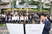 내고향뉴스 정미경 기자 | 경기도가 산업벨트를 연결·확장하는 거점이자 ‘기회타운 3대 프로젝트’ 중 하나인 ‘4중 역세권 AI혁신의 중심 - 경기 기회타운 인덕원’ 공사를 시작했다. 경기도는 16일 안양 인덕원 환승주차장에서 김동연 경기도지사, 최대호 안양시장, 국회의원과 도·시의원, 경기주택도시공사(GH), 안양도시공사, 지역주민 등 100여 명이 참석한 가운데 ‘경기 기회타운 인덕원’ 착공식을 가졌다. 김동연 지사는 이날 착공식에서 “안양은 개인적으로 제2의 고향인데, 이곳을 뽕나무밭이 변해서 바다가 되듯이(상전벽해·桑田碧海) 완전히 변화시키겠다. 상전벽해가 되는 기적과 성과를 반드시 만들겠다”고 밝혔다. 김 지사는 이어 사업의 네 가지 비전을 소개하면서 “첫 번째는 4중 역세권 기반의 복합 환승시설 등 (기회타운을 통한)지역경제 활성화와 삶의 질 향상을 반드시 이뤄내고, 두 번째로 AI, 바이오, 모빌리티, 벤처스타트업 혁신 생태계를 이곳 기회타운을 중심으로 조성하겠다”며 “세 번째로 직주근접과 워라밸(일과 삶의 균형)이 가능한 경기도형 미래도시를 실현하고, 네 번째로 기회타운을 탄소중립을 실현하는 에너지