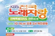 내고향뉴스 고광만 기자 | 대한민국 대표 국민 프로그램인 KBS ‘전국노래자랑’이 12년 만에 다시 전주에서 열린다. 전주시는 오는 10월 14일 오후 2시, 덕진공원에서 온 국민의 사랑을 받아온 KBS ‘전국노래자랑’ 전북특별자치도 전주시편이 개최된다고 12일 밝혔다. 이번 행사는 지난 2013년 이후 12년 만에 전주에서 열리는 것으로, 시민과 관광객이 함께 즐기고 화합하는 시민 축제의 장으로 꾸며질 예정이다. 본선 무대에 앞서 오는 10월 12일 오후 1시 전주시청 강당에서 예심이 진행되며, 예심을 통해 본선 무대에 오를 참가자가 선발된다. 참가 신청은 15일부터 19일까지 가능하며, 선착순 300팀으로 예심 신청이 마감된다. 신청 대상은 전주시민과 전주 소재 사업자, 직장인, 학생 등 누구나 참여할 수 있으며, 각 동 주민센터를 직접 방문하거나 전자우편으로 접수하면 된다. 특히 이번 전주시편에는 김성환·강문경·윤태화·전유진·진현 등 인기 초대 가수들이 함께해 시민들에게 풍성한 볼거리를 제공하게 된다. 시는 이번 전국노래자랑 개최를 통해 시민이 주인공이 되는 ‘대한민국