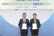 내고향뉴스 김익성 기자 | 여주시의회가 2025년 추진한 ‘여주시 중복규제 개선 정책연구’ 보고서를 집행부에 전달하여 향후 규제개선 추진을 위한 협력 기반이 마련됐다. 여주시의회는 3월 27일 오전 시장실에서 '여주시 중복규제 개선 정책연구' 최종보고서 전달식을 개최했다고 밝혔다. 이날 전달식에는 이충우 여주시장을 비롯한 집행부 관계자와 여주시의회 박두형 의장, 연구수행기관 관계자 등이 참석해 연구결과를 공유하고 정책 반영 방안을 논의했다. 이번 연구는 여주시의회 의원연구단체인 '여주시 중복규제 개선 정책 연구모임'이 주관해 2025년 6월부터 약 6개월간 수행됐으며, 수도권정비계획법과 한강수계법 등 중첩 규제로 인한 지역 발전 제한 문제를 분석하고 합리적인 개선 방안을 도출하는 데 목적을 두고 추진됐다. 여주시의회 박두형 의장은 “연구단체 보고서 전달은 중복규제 개선을 위한 실질적인 출발점이라는 점에서 의미가 있다”며 “연구 결과가 효과적인 정책으로 이어질 수 있도록 집행부의 적극적인 검토를 당부한다”고 말했다. 이충우 여주시장은 “환경부 등 관계기관에 실효성 있는 규제 개선을 적극 건의하겠다”고