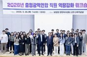 내고향뉴스 김익성 기자 | 충청광역연합이 4개 시·도(대전·세종·충북·충남) 파견 직원들의 정책 이해도를 높이고 조직 결속력을 다지기 위한 본격적인 역량 강화 행보에 나섰다. 충청광역연합은 3월 26일 보람동 행복누림터에서 전 직원을 대상으로 ‘2026년 충청광역연합 직원 역량강화 워크숍’을 개최했다고 밝혔다. 이번 워크숍은 연합 직원들이 연합의 설립 취지와 주요 정책을 빠르게 숙지하고 향후 충청권 행정환경 변화에 능동적으로 대응할 수 있도록 마련됐다. 이날 워크숍에서는 최민호 충청광역연합장이 직접 강사로 나서 ‘행정환경에 따른 연합의 역할’을 주제로 특강을 진행했다. 최 연합장은 특강을 통해 초광역 협력체의 필요성을 강조하며, 충청권의 공동 번영을 위한 직원들의 사명감과 역할을 당부했다. 특히, 현대의 시대정신이 ‘에너지 확보, 기술 인력 양성, 기업 우호적 환경 조성, 물관리’임을 강조하며, 시대정신을 반영한 정책을 구상하고 추진하는 것이 공직자에게 필요한 자세라고 힘주어 말했다. 이어지는 강의에서는 대전연구원 염인섭 책임연구위원이 ‘연합의 출범 배경 및 역사, 주요