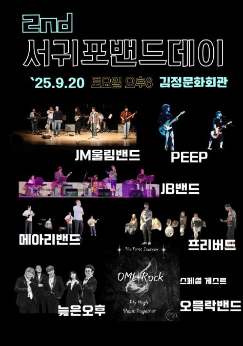 내고향뉴스 관리자 기자 | 서귀포를 기반으로 활동하고 있는 평균 연령 40대의 직장인 밴드팀들이 작년에 이어 오는 9월 20일 오후 6시, 서귀포 김정문화회관에서 '제2회 서귀포 밴드데이'를 개최한다.