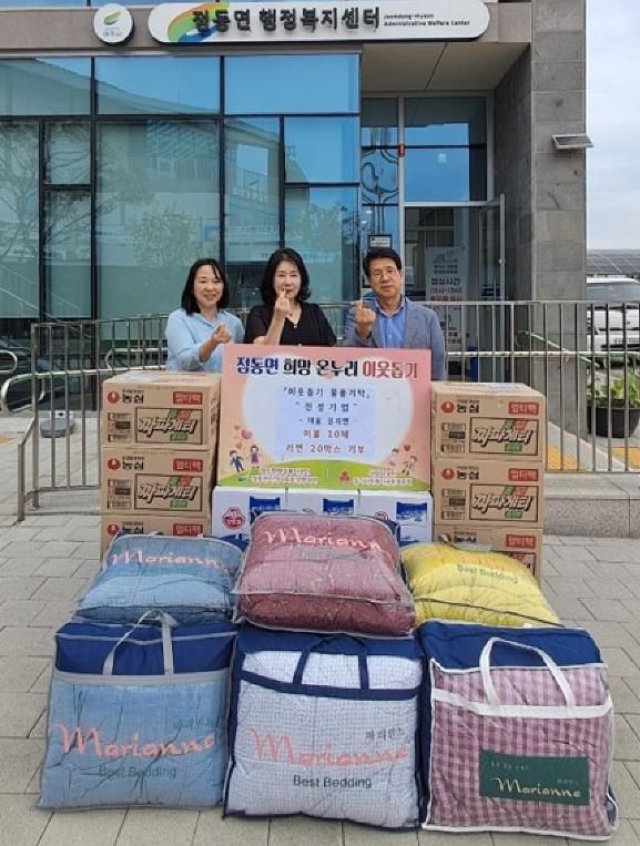 내고향뉴스 관리자 기자 | 점동면은 지난 9월 8일, 점동면 관내 업체인 진성기업 권지연 대표가 지역의 취약계층과 독거어르신을 위해 이불 10채와 라면 20박스를 기탁했다고 밝혔다.
