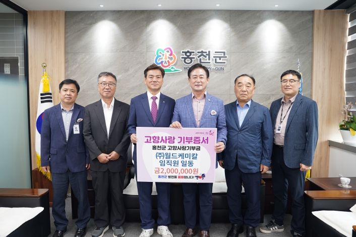 신영재 홍천군수는 “소중한 마음을 전해주신 ㈜월드케미컬 임직원 여러분께 깊은 감사를 드리며, 기부금은 군민을 위해 꼭 필요한 곳에 소중히 사용하겠다”고 말했다.