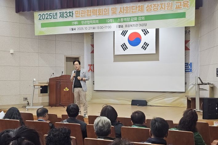 내고향뉴스 박성환 기자 | 의성군은 10월 27일 종합복지관 대강당에서 관내 사회단체 임원 및 실무자 등 70여 명이 참석한 가운데 ‘2025년 제3차 민관협력회의 및 성장지원교육’을 개최했다고 밝혔다.
