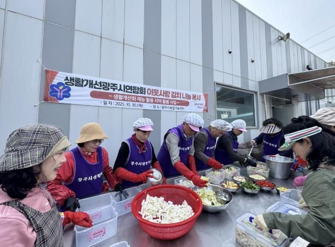 내고향뉴스 박성환 기자 | 생활개선광주시연합회는 지난 30일 ‘이웃사랑 김치 나눔 행사’를 열고 지역 내 취약계층 220가구에 정성껏 담근 물김치를 전달했다.