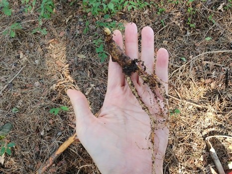 산양삼주 만들기 체험을 위해 산양삼을 직접 캐 봅니다. 이거 재미나네요.