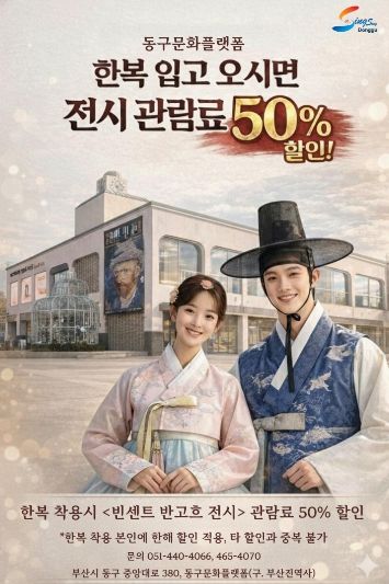 내고향뉴스 김명신 기자 | 부산 동구는 한복 입기 활성화를 위해 한복을 착용하고 방문한 관람객을 대상으로 동구 문화플랫폼 전시 관람료 할인 이벤트를 진행한다.