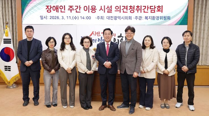 내고향뉴스 김익성 기자 | 대전광역시의회 복지환경위원회는 11일 시의회 3층 소통실에서 이효성 의원(국민의힘, 대덕구1) 주재로 '장애인 주간 이용시설 의견청취 간담회'를 개최했다.