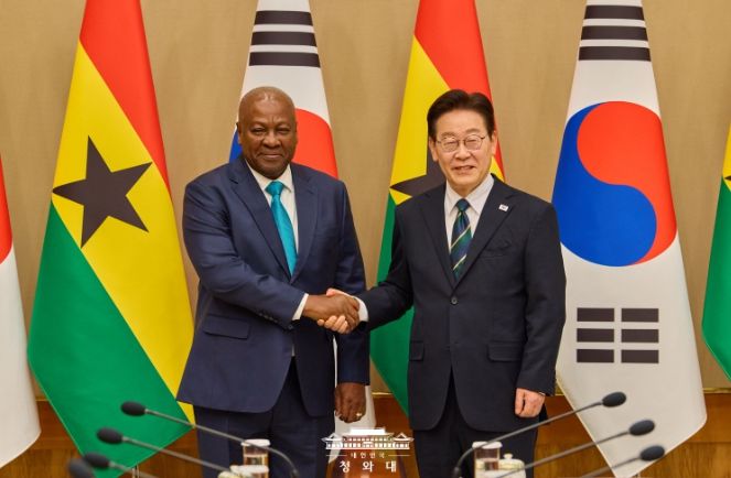 내고향뉴스 김익성 기자 | 이재명 대통령은 11일 오후 우리나라를 실무 방한한 존 드라마니 마하마 가나 대통령과 정상회담을 가졌다고 강유정 청와대 대변인이 서면 브리핑을 통해 밝혔다.