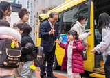 도성훈 인천시교육감, 새학기 '학생성공버스' 등교 학생 격려