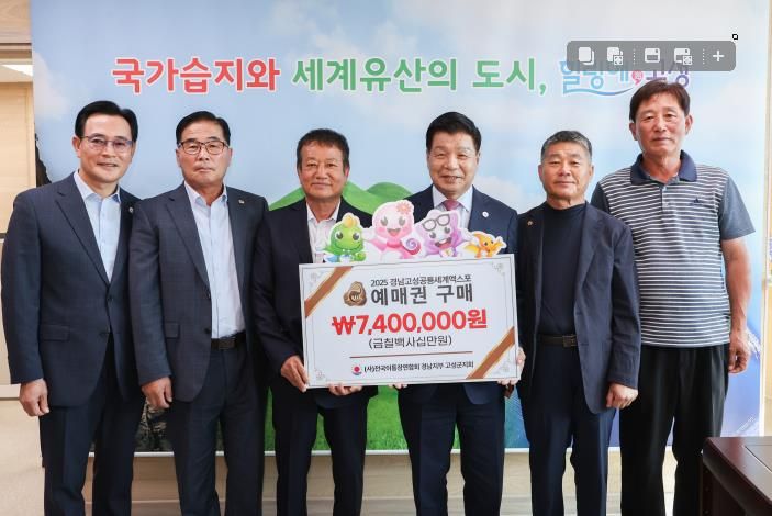 내고향뉴스 임정빈 기자 | 고성문화관광재단은 (사)전국 이통장연합회 경상남도지부 고성군지회가 '2025경남고성공룡세계엑스포'의 성공적인 개최를 위해 9월 23일 740만 원 상당의 예매권을 구입했다고 밝혔다.