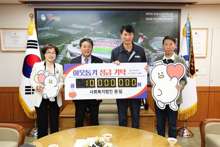 내고향뉴스 임정빈 기자 | 김해시는 25일 사회복지법인 동일(대표 김종각)이 추석을 맞아 이웃돕기 성금 1,000만원을 기탁했다고 밝혔다.