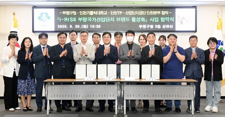 내고향뉴스 이경희 기자 | 부평구는 지난 30일 구청 상황실에서 인천가톨릭대학교 ·인천테크노파크·한국산업단지공단과 함께 ‘I-RISE 부평국가산업단지 브랜드 활성화 사업’ 협약을 체결했다.