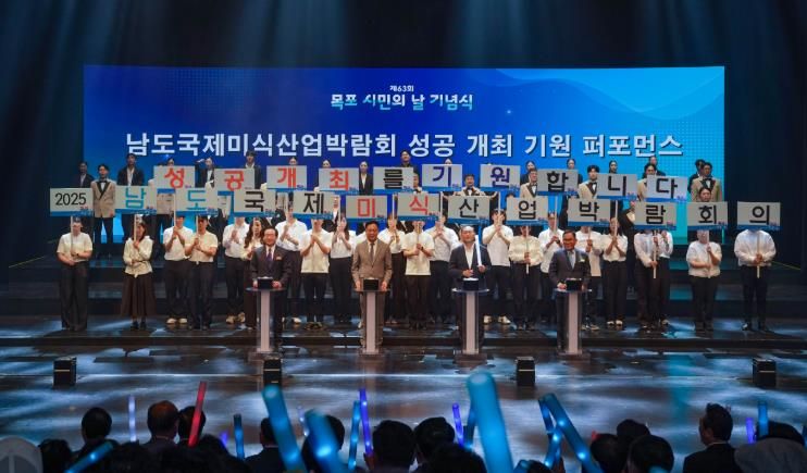 기념식은 ▲시민의 상 시상 ▲목포시립예술단 축하공연 ‘신명나는 목포, 젊은 목포’ ▲2025 남도국제미식산업박람회 성공 개최 기원 퍼포먼스 ▲‘목포의 찬가’ 합창 등으로 다채롭게 진행됐다.