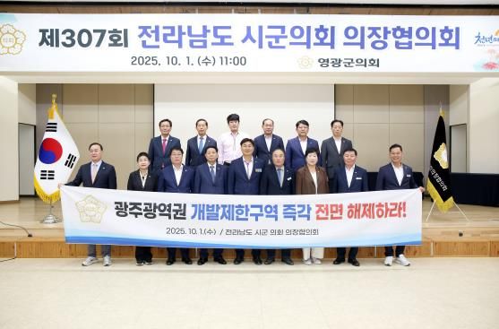내고향뉴스 채필재 기자 | 전라남도 시군 의회 의장협의회는 지난 10월 1일 영광군의회에서 개최된 제307회 정례회의에서“광주광역권 개발제한구역 전면 해제 촉구 건의안”을 만장일치로 채택했다.