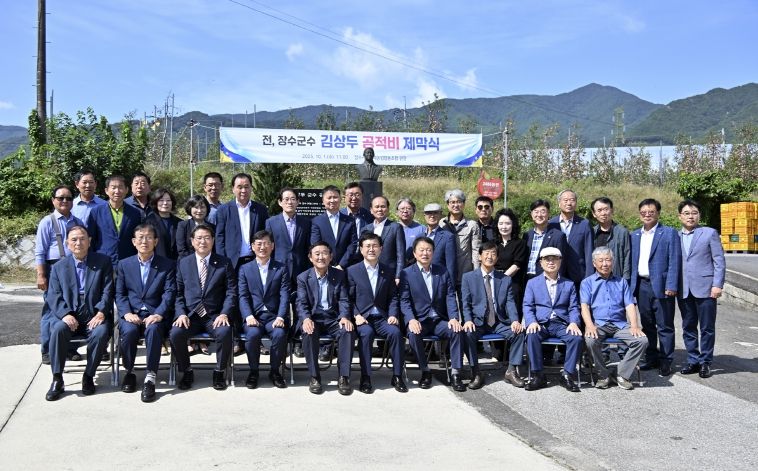 내고향뉴스 정미경 기자 | 장수군은 지난 1일 장수사과원예협동조합 광장에서 김상두 전 장수군수의 공적비 제막식을 거행했다고 밝혔다.