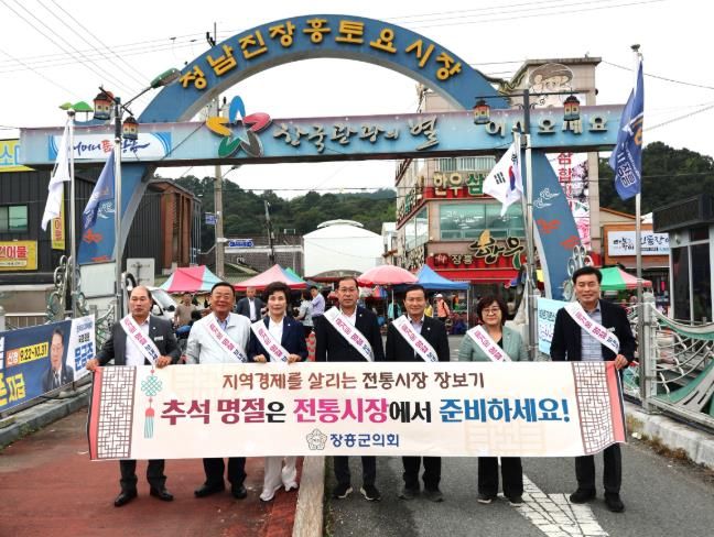 내고향뉴스 채필재 기자 | 장흥군의회는 10월 2일, 지역 대표 전통시장인 정남진 토요시장에서 ‘추석 맞이 장보기 행사’를 열었다.