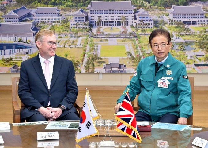 내고향뉴스 라정운 기자 | 이철우 경상북도지사는 3일 도청을 방문한 콜린 크룩스(Colin Crooks) 주한 영국대사 내외와 만나, 경주 APEC 정상회의의 성공적 개최 협력 방안과 함께 산업·문화·교육 등 다양한 분야의 교류 확대를 논의했다.