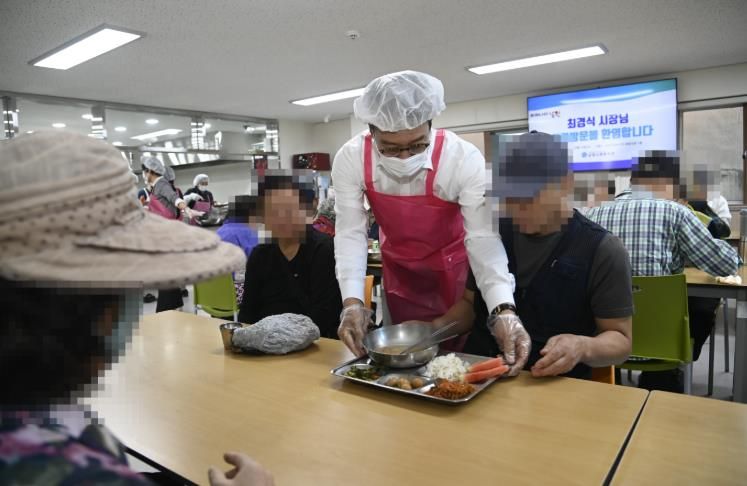 내고향뉴스 정미경 기자 | 최경식 남원시장이 지난 10일 기능보강이 완료된 남원사회복지관 경로식당을 방문해 배식 봉사를 진행하며 어르신들과 소통하는 시간을 보냈다.