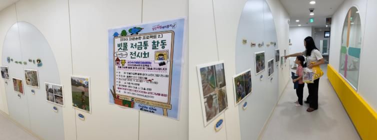 센터는 그림과 사진 전시를 통해 영유아와 보호자에게 환경보호의 중요성을 자연스럽게 알리고 있다.
