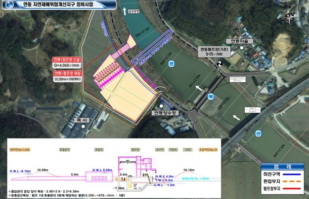 이번 사업은 연동제수문의 낮은 높이로 인한 홍수 역류와 배수펌프장 부재로 발생한 배수 불량 문제 해결을 목표로 한다.