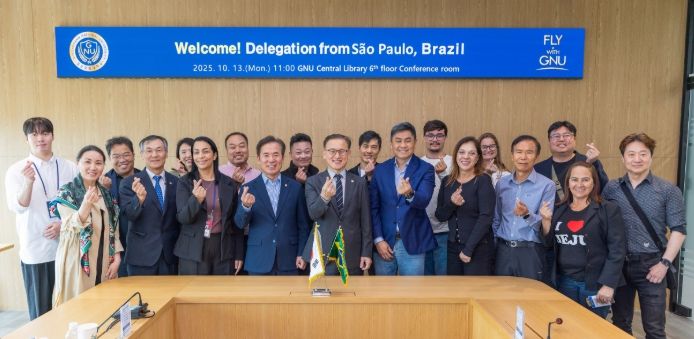 내고향뉴스 임정빈 기자 | 경상국립대학교는 브라질 상파울루시 대표단이 10월 13일 오전 경상국립대학교를 내방하여 권진회 총장을 예방하고 우주항공, 문화콘텐츠, 미디어 분야의 협력 방안을 논의했다고 밝혔다.