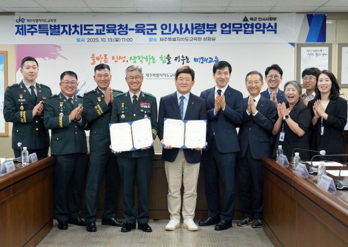 내고향뉴스 채필재 기자 | 제주특별자치도교육청은 13일 도교육청 상황실에서 육군 인사사령부와 고등학생들의 진로 탐색 기회 확대를 위한 업무협약을 체결했다.