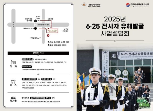 내고향뉴스 김익성 기자 | 국방부유해발굴감식단은 10월 22일 울산광역시 남구에서 2025년 하반기 6·25전사자 유해발굴사업 설명회를 개최했다.