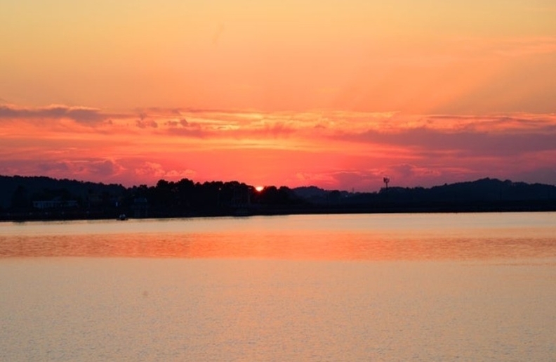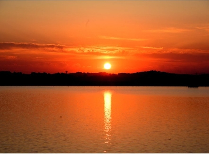 하여간 육지속 논산 일몰로 호수 뒤로 뉘엿뉘엿지는 해를 바라보네요.