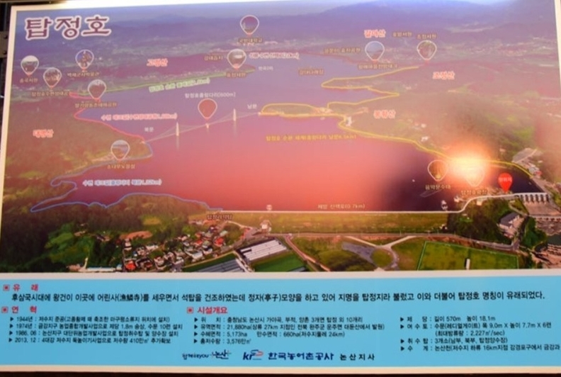 논산가볼만한곳 탑정호에 대한 유래가 써 있어서 찍어본 사진인데,