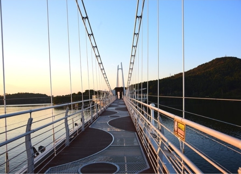 2020년 1`0월 15일에 준공된 600m의 인도교랍니다.(호수에 세워진 인도교로는 우리나라에서 가장 긴 다리로 아네요.)