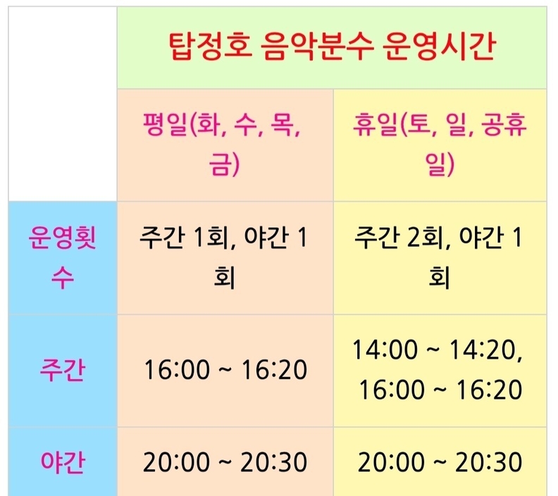 시간이 되면 탑정호 음악분수대가 작동되면서