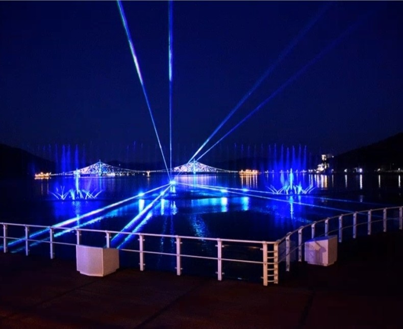 논산 야경명소로 조망하기 좋은 탑정호 음악분수대로.
