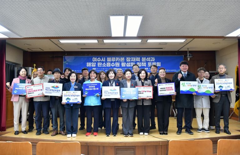 내고향뉴스 김익성 기자 | 여수시의회 의원연구단체 ‘기후변화대응 탄소중립 연구회’(대표의원 정신출)가 11월 3일 전남대학교 산학연구관에서 ‘여수시 블루카본 잠재력 분석과 해양 탄소흡수원 활성화 정책 토론회’를 개최했다고 밝혔다.