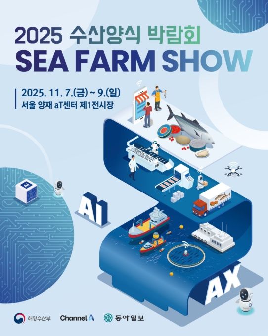 내고향뉴스 윤환열 기자 | 해양수산부는 11월 7일부터 9일까지 서울 양재 aT센터 1층 제1전시장에서 ‘2025 수산양식박람회(Sea Farm Show)’를 개최한다고 밝혔다.