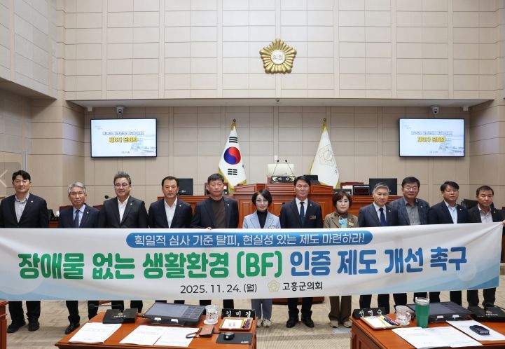 내고향뉴스 김익성 기자 | 고흥군의회는 11월 24일에 열린 제342회 제2차 정례회 제8차 본회의에서 'BF 인증 제도 개선 촉구 건의안'을 의결하고, 현행 제도의 비현실적인 운영 방식에 대한 전면적인 재검토와 개선을 정부와 국회에 강력히 요구했다.