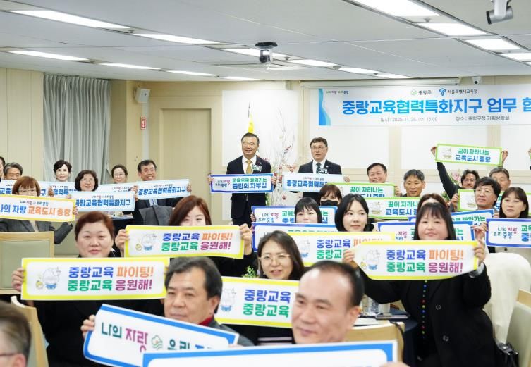 내고향뉴스 박성환 기자 | 중랑구는 11월 26일 구청 4층 기획상황실에서 서울특별시교육청과 ‘중랑교육협력특화지구’업무협약을 체결했다. 이번 협약은 2019년 혁신교육지구, 2023년 미래교육지구 추진에 이어 지역 교육 협력사업을 확장하는 단계로, 구·교육청·학교 간 협력 구조를 체계화해 지역 기반 교육 환경을 강화하기 위해 마련됐다.