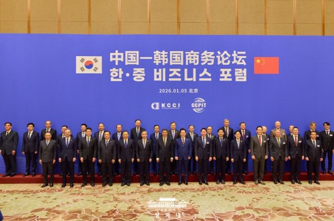 포럼에 앞서 열린 한중 주요 기업인 간담회에서도 이 대통령은 "한중은 같은 바다를 같은 방향을 향해 함께 항해하는 배와 같은 입장"이라며 "산업 공급망 간 연계로 서로 발전에 도움을 주고 글로벌 경제를 선도해 왔다"고 평가했다.