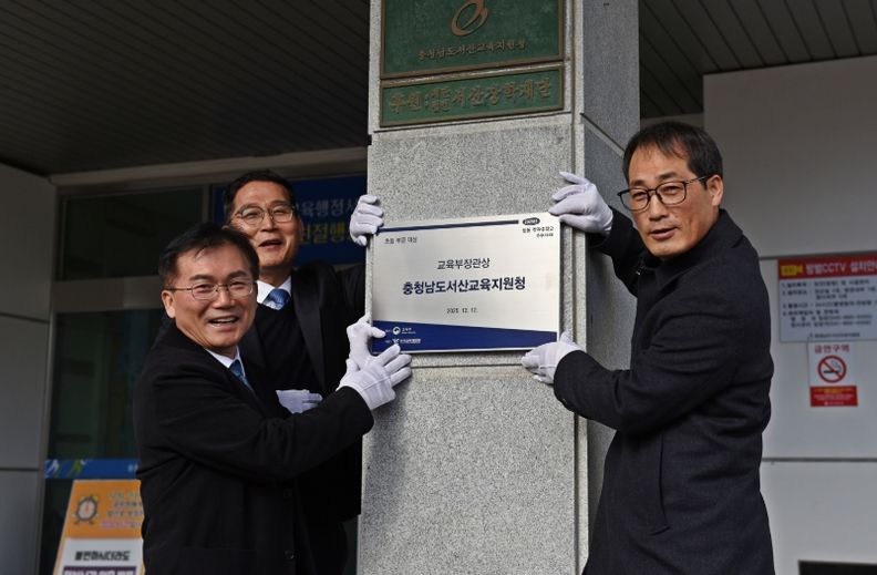 내고향뉴스 채필재 기자 | 충청남도서산교육지원청은 1월 9일 오전 11시 20분, 교육지원청 본관 입구에서 교육부 주관 ‘늘봄·방과후학교 우수사례 기관’ 전국 대상 수상을 기념하는 현판식을 거행했다.
