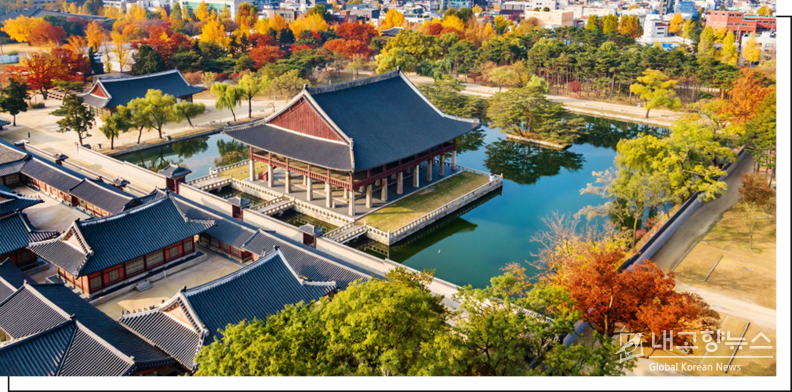 白岳山(今の北岳山)を主山とする広い地形に建物が配置され、正門である光化門の前に広々とした六曹街が広がる、漢陽の中心地であった。「景福」には「新しい王朝が大きな福を授かり繁栄する」という意味が込められており、世宗の代にはここで創製した訓民正音(ハングル)が 頒布 された。