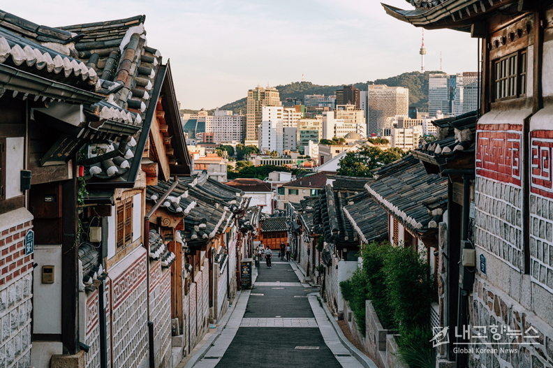 最著名的拍照点是一条连接Bukchon-ro11-gil、Gahoe-dong31-gil等传统瓦顶的风景线。