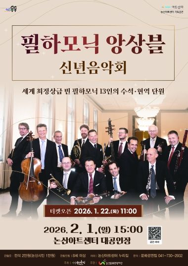 (재)논산문화관광재단 관계자는 “이번 음악회를 통해 시민의 문화예술 향유 기회가 확대되고, 지역 문화 수준이 한 단계 도약하는 계기가 될 것으로 기대한다”며 “세계적인 연주자들의 공연을 가까이에서 즐기며, 새해의 희망과 감동을 만끽하시길 바란다”고 말했다.