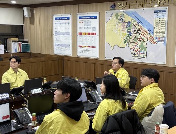 내고향뉴스 장동환 기자 | 진교훈 서울 강서구청장이 1일 밤부터 2일 새벽 사이에 서울 전역에 많은 눈이 내릴 것이 예보됨에 따라 구 제설대책본부를 찾아 제설대응 체계를 점검했다.