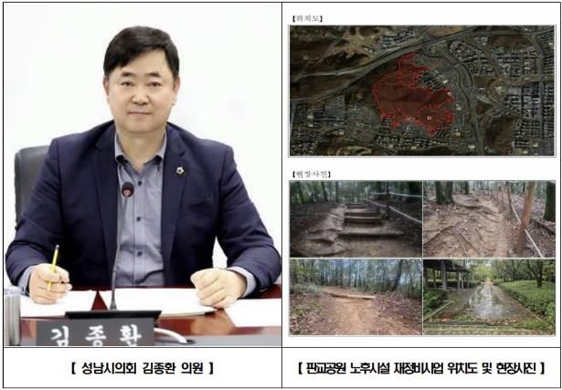 내고향뉴스 김익성 기자 | 성남시의회 국민의힘 김종환 의원(판교·백현·운중·대장동, 예산결산특별위원장)은 분당구 판교동 판교공원 일원 노후 산책로와 바닥포장 등을 정비하는 재정비공사가 본격 추진됨을 밝혔다.