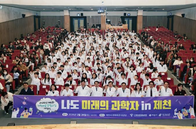 내고향뉴스 김명신 기자 | 제천시인재육성재단은 지난 28일 제천시 문화회관에서 '2026년 제6회 과학·예술 융합교실 개강식 ‘나도 미래의 과학자 in 제천’'을 성황리에 개최했다.