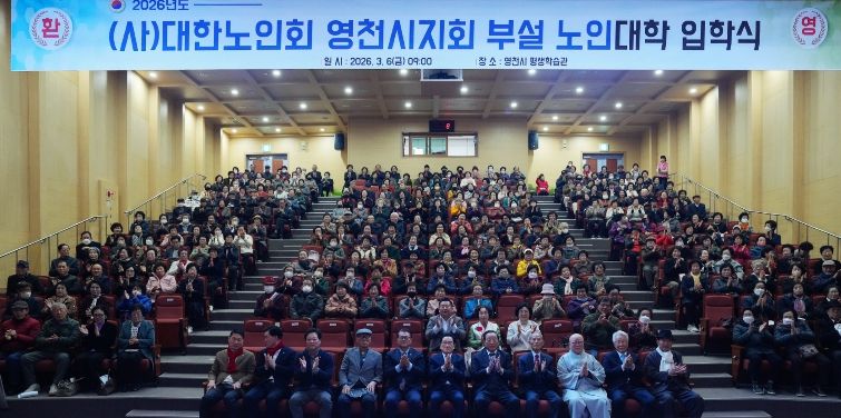 내고향뉴스 장우석 기자 | 영천시는 대한노인회 영천시지회 부설 노인대학이 6일 평생학습관 우석홀에서 노인대학생, 기관단체장 등 350여 명이 참석한 가운데 ‘제31기 입학식’을 개최했다고 밝혔다.